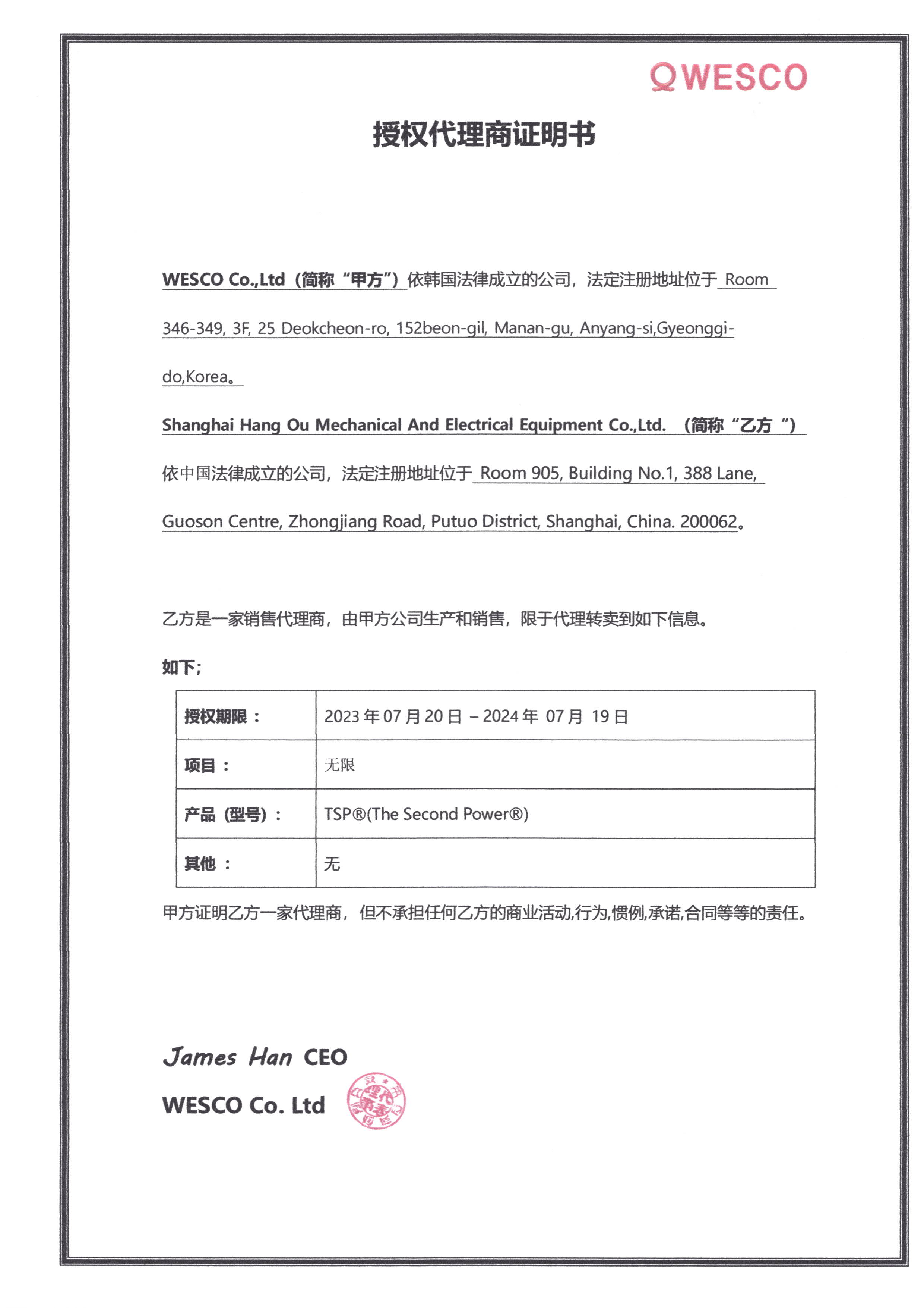 2023年WESCO工廠授權(quán)上海航歐中國區(qū)銷售