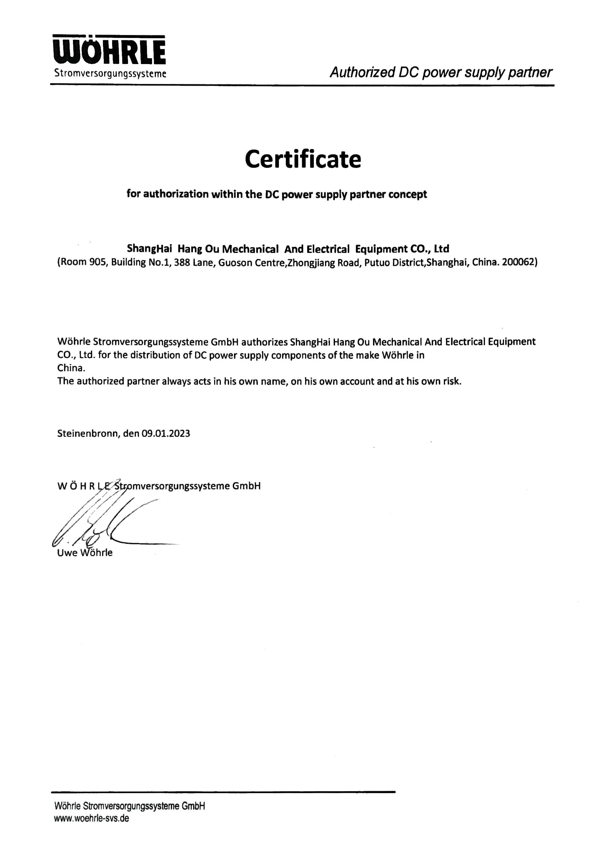 2023年WOHRLE工廠授權(quán)上海航歐中國(guó)區(qū)代理