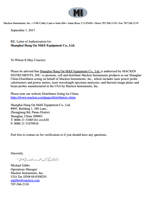 - MACKEN工廠授權(quán)上海航歐中國區(qū)代理