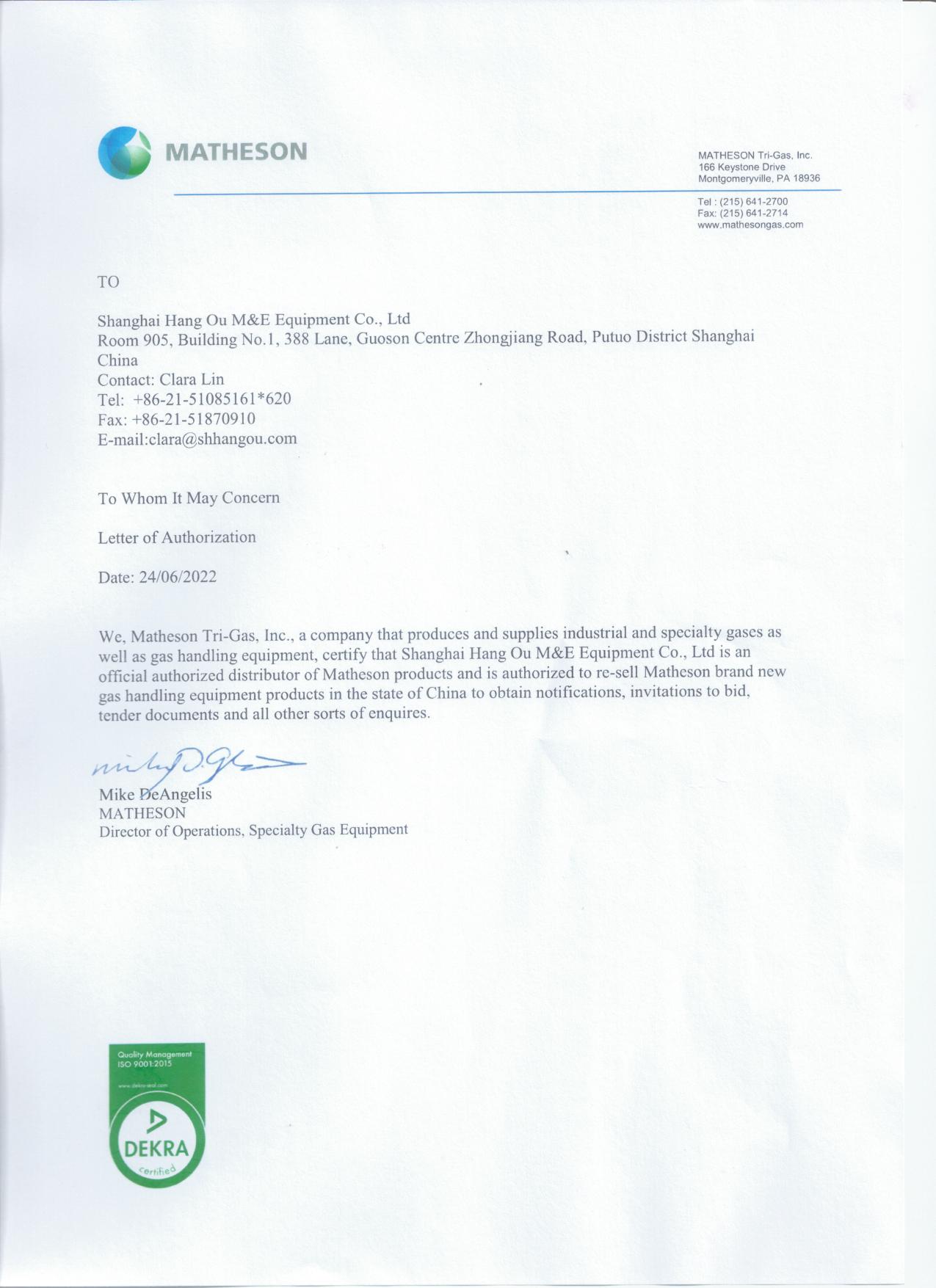 - Mkrholding集團公司授權(quán)上海航歐中國區(qū)代理