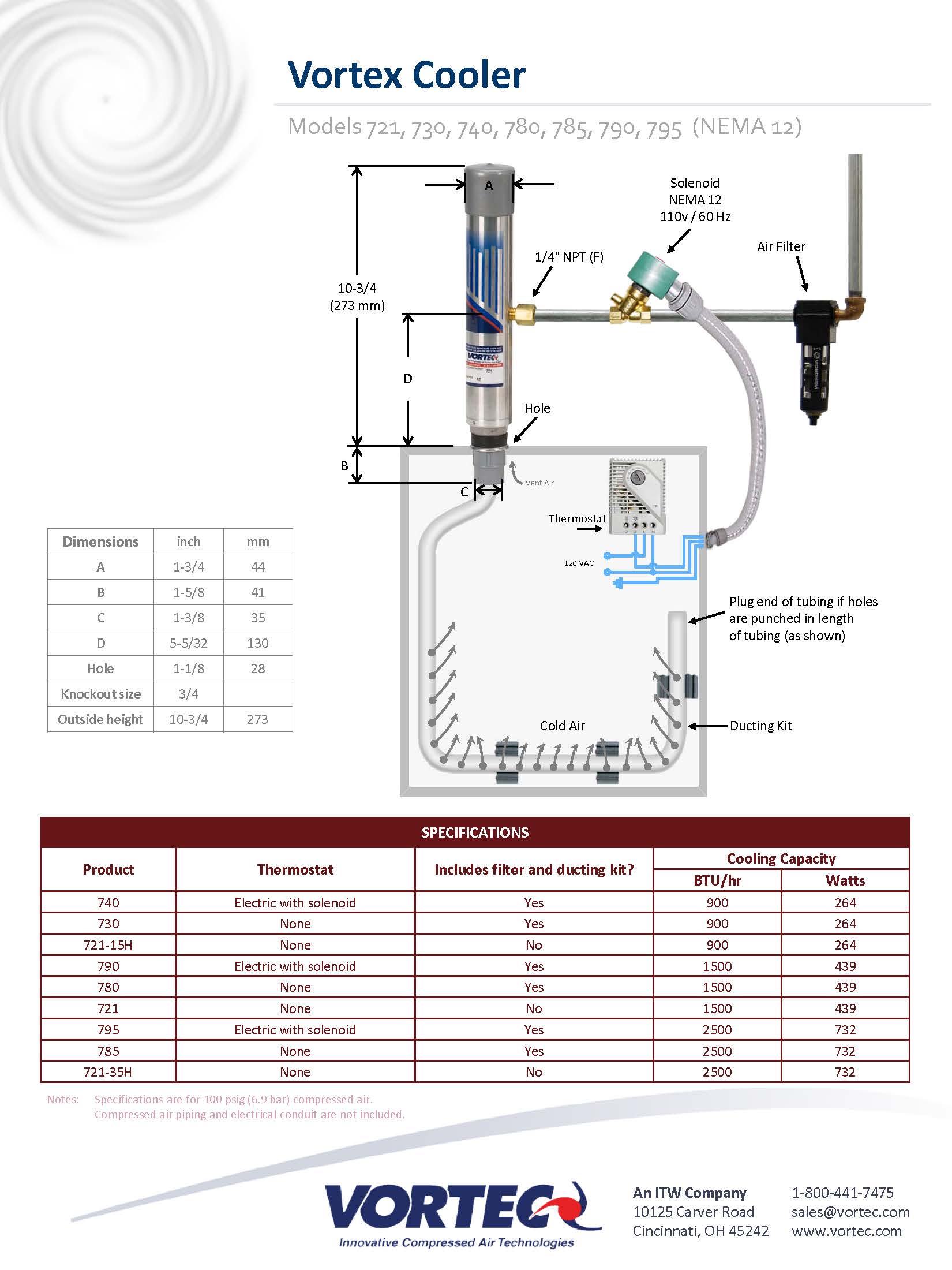 Vortec渦流管的型號有:106-2-H、106-4-H、308-35-H、106-8-H、208-11-H、208-25-H、208-11-HSS、208-15-HSS、208-25-HSS、328-50-H、328-75-H、328-100-H
