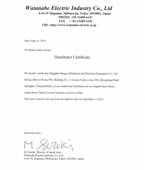 Watanabe傳感器Watanabe放大器Watanabe變送器Watanabe互感器Watanabe電表上海航歐機電設(shè)備有限公司從事進口機電設(shè)備、儀器儀表等備品備件的銷售,是經(jīng)營世界各地進口設(shè)備機電配件的企業(yè)。上海航歐公司與眾多品牌電子元件供應商建立有良好的合作關(guān)系,在歐美、日本等地形成了穩(wěn)定的供應網(wǎng)絡,良好的供應商關(guān)系和多年的行業(yè)經(jīng)驗,使我們在價格及貨期上有優(yōu)勢。
