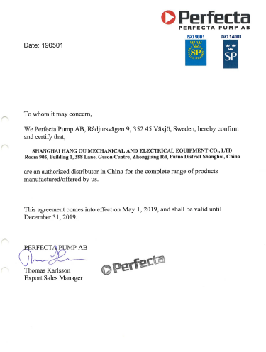 2019年 Perfecta工廠上海航歐中國區(qū)銷售